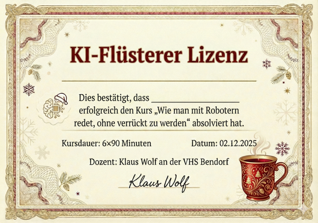 Ein großes Dankeschön an die Kursteilnehmer des KI-Kurses an der VHS in Bendorf.
